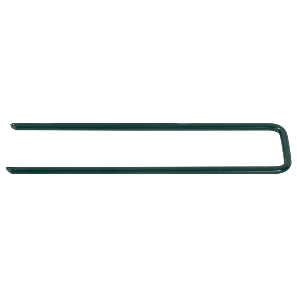 De bevestigingsmiddelen zijn gemaakt van ijzer en zijn corrosiebestendig en weerbestendig. Het ontwerp met schuine punt maakt het makkelijker om ze moeiteloos in de grond te steken. De U-vormige pennen kunnen het kunstgras bevestigen om te voorkomen dat het door de wind omhoog wordt geblazen.