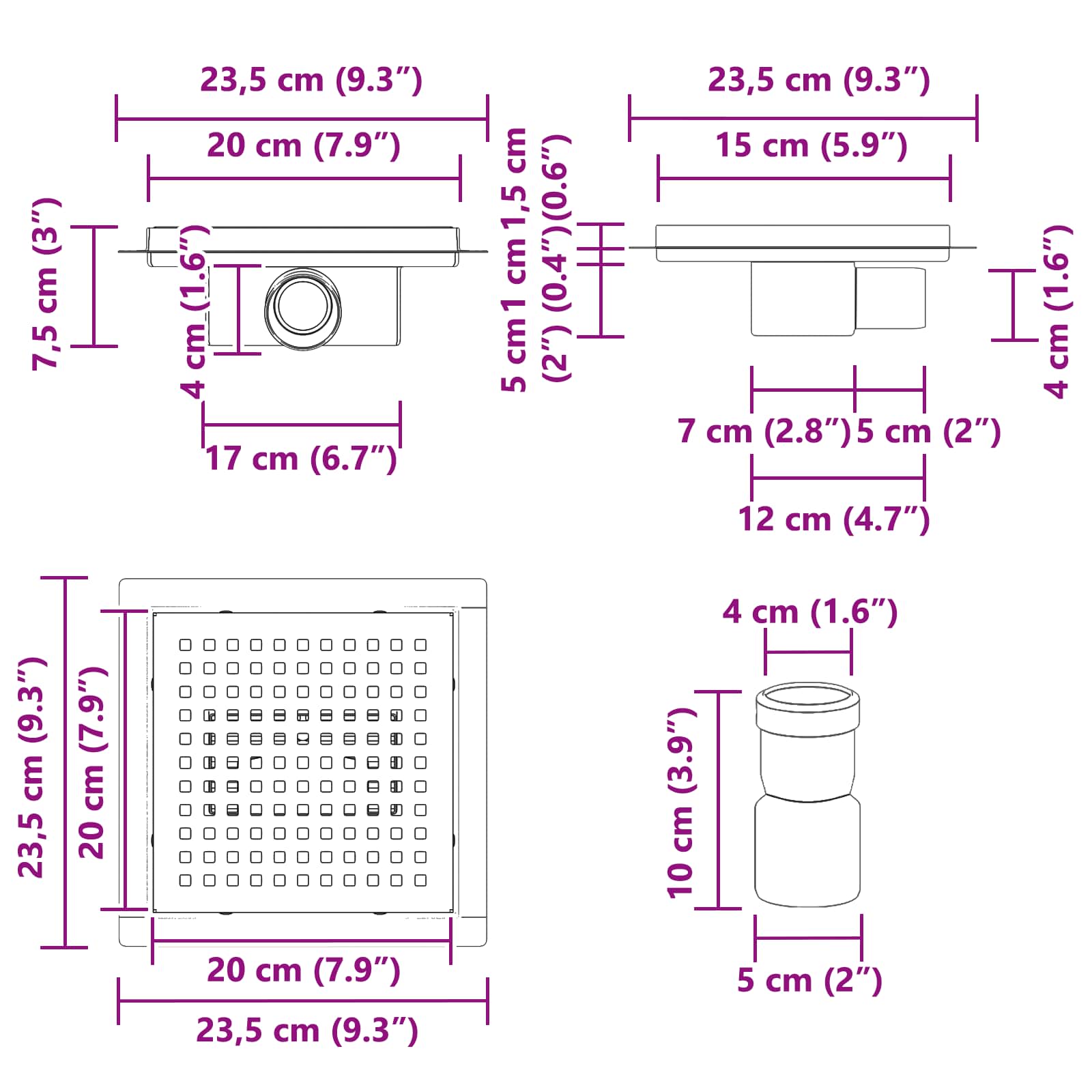 - Universele toepasbaarheid: Deze afvoer is geschikt voor elk badkamergebruik en past makkelijk in verschillende doucheconfiguraties. Het maximaliseert de beschikbare ruimte en verbetert de gebruikerservaring. Of je nu van een klassieke of moderne stijl houdt, deze afvoer kan aan jouw wensen en behoeften voldoen.