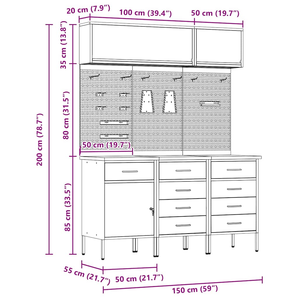 Deze duurzame werkcabinetset is ontworpen met een goede balans tussenfunctionaliteit en stijl. Met zijn strakke rechthoekige look en moderne uitstraling is het de perfecte keuze voor zowel hobbyisten als professionals die houden van een georganiseerde en nette werkplek. Het is gebruiksvriendelijk en ideaal voor het organiseren van je gereedschap, zonder in te boeten op de uitstraling.