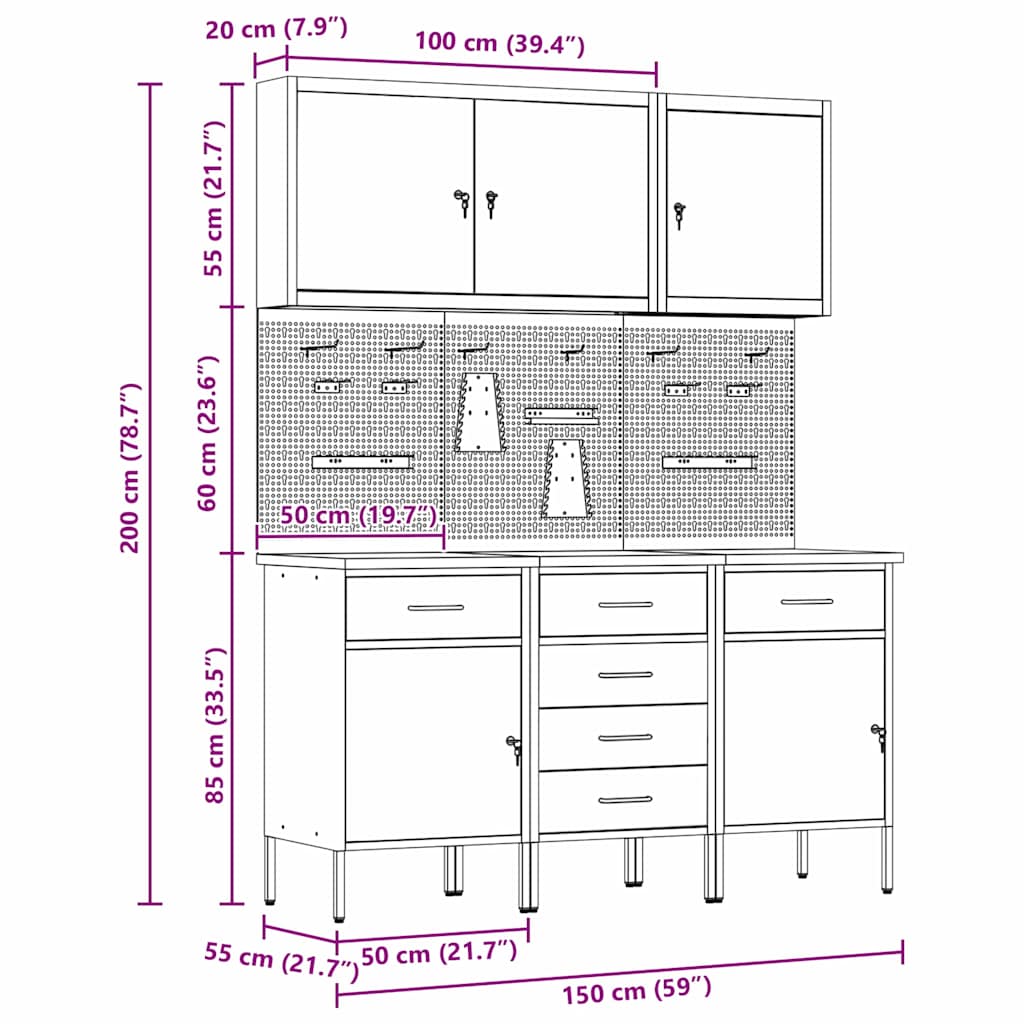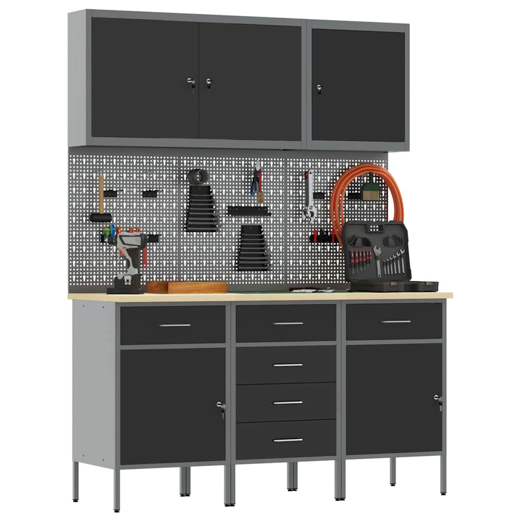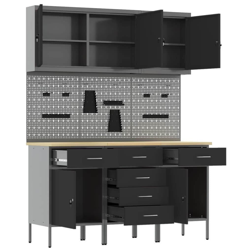 - Veelzijdige opslag: Met compartimenten, lades en planken biedt deze kast geweldige organisatieopties. Je kunt je gereedschap en materialen makkelijk ordenen, waardoor je werkruimte efficiënt is en alles op zijn plek blijft. Het slimme ontwerp voldoet aan allerlei opslagbehoeften, van grote gereedschappen tot kleine accessoires, waardoor het een must-have is voor georganiseerde werkruimtes.