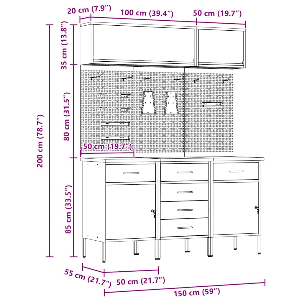 - Aanbevolen toepassingen: Dit cabinetsysteem is perfect voor gebruik in werkplaatsen en is geschikt voor tal van toepassingen. Het is een handige oplossing voor zowel klussers als professionals die hun gereedschap en accessoires georganiseerd willen houden, alles binnen handbereik zonder concessies te doen aan stijl.