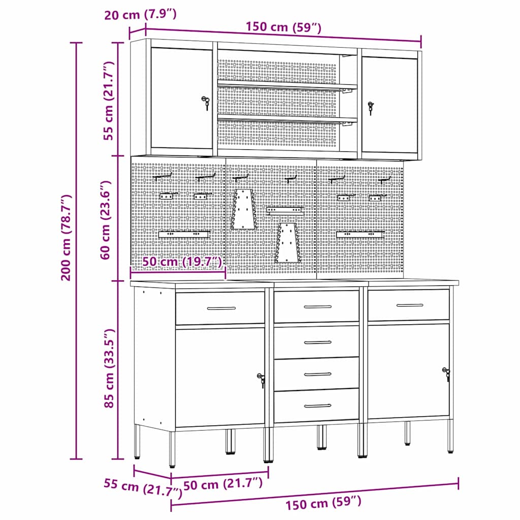 - Veelzijdige opslag: Met compartimenten, lades en planken biedt deze kast geweldige organisatieopties. Je kunt je gereedschap en materialen makkelijk ordenen, waardoor je werkruimte efficiënt is en alles op zijn plek blijft. Het slimme ontwerp voldoet aan allerlei opslagbehoeften, van grote gereedschappen tot kleine accessoires, waardoor het een must-have is voor georganiseerde werkruimtes.