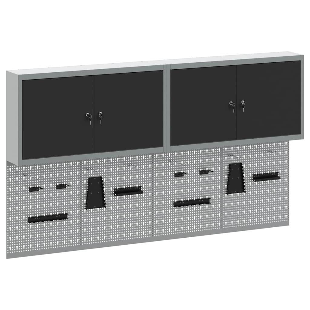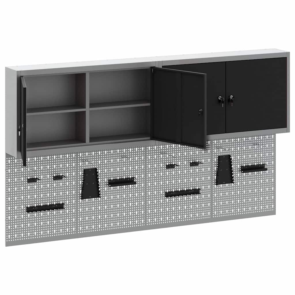 Deze coole wandgemonteerde gereedschapskast en pegboard set is onmisbaar voor een georganiseerde werkplaats of garage. Met een strak industrieel ontwerp en gemaakt van gepoedercoat staal met een gladde grijze afwerking, biedt de kast een betrouwbare oplossing om je gereedschap netjes op te bergen en gemakkelijk bereikbaar te maken. Het pegboard voegt extra functionaliteit toe met aanpasbare indelingen voor je gereedschap.