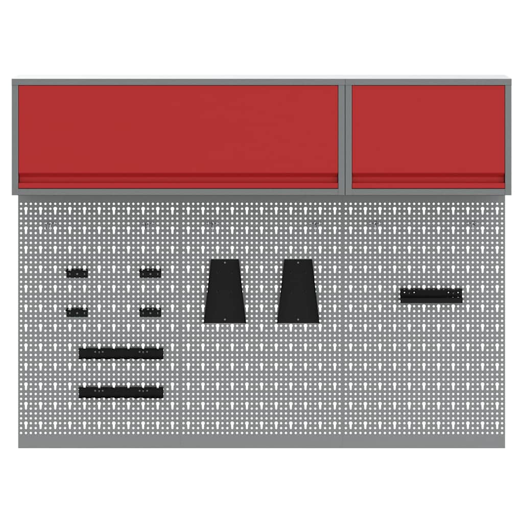 - Alles-in-één Componenten: De set bevat metalen planken van gepoedercoat staal die bestand zijn tegen gewicht en veelvuldig gebruik. Met de metalen pegboards kunnen gebruikers hun gereedschap eenvoudig organiseren en de ruimte optimaal benutten.