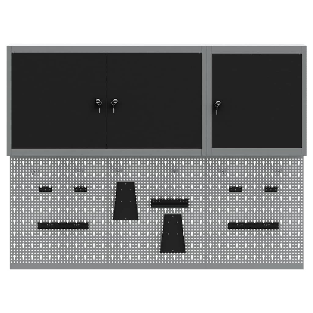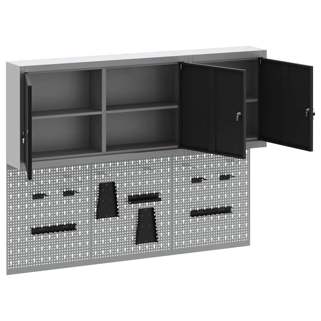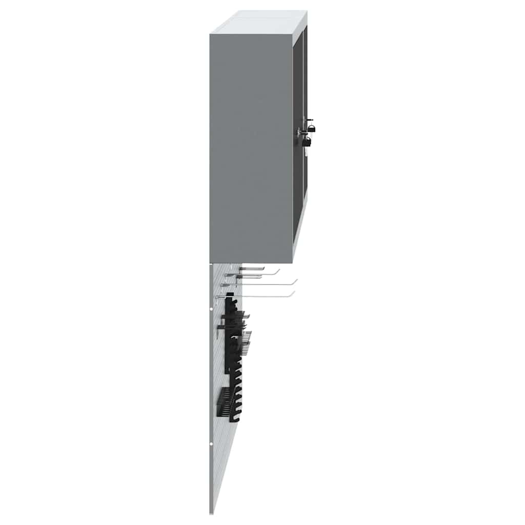 Deze coole wandgemonteerde gereedschapskast en pegboard set is onmisbaar voor een georganiseerde werkplaats of garage. Met een strak industrieel ontwerp en gemaakt van gepoedercoat staal met een gladde grijze afwerking, biedt de kast een betrouwbare oplossing om je gereedschap netjes op te bergen en gemakkelijk bereikbaar te maken. Het pegboard voegt extra functionaliteit toe met aanpasbare indelingen voor je gereedschap.