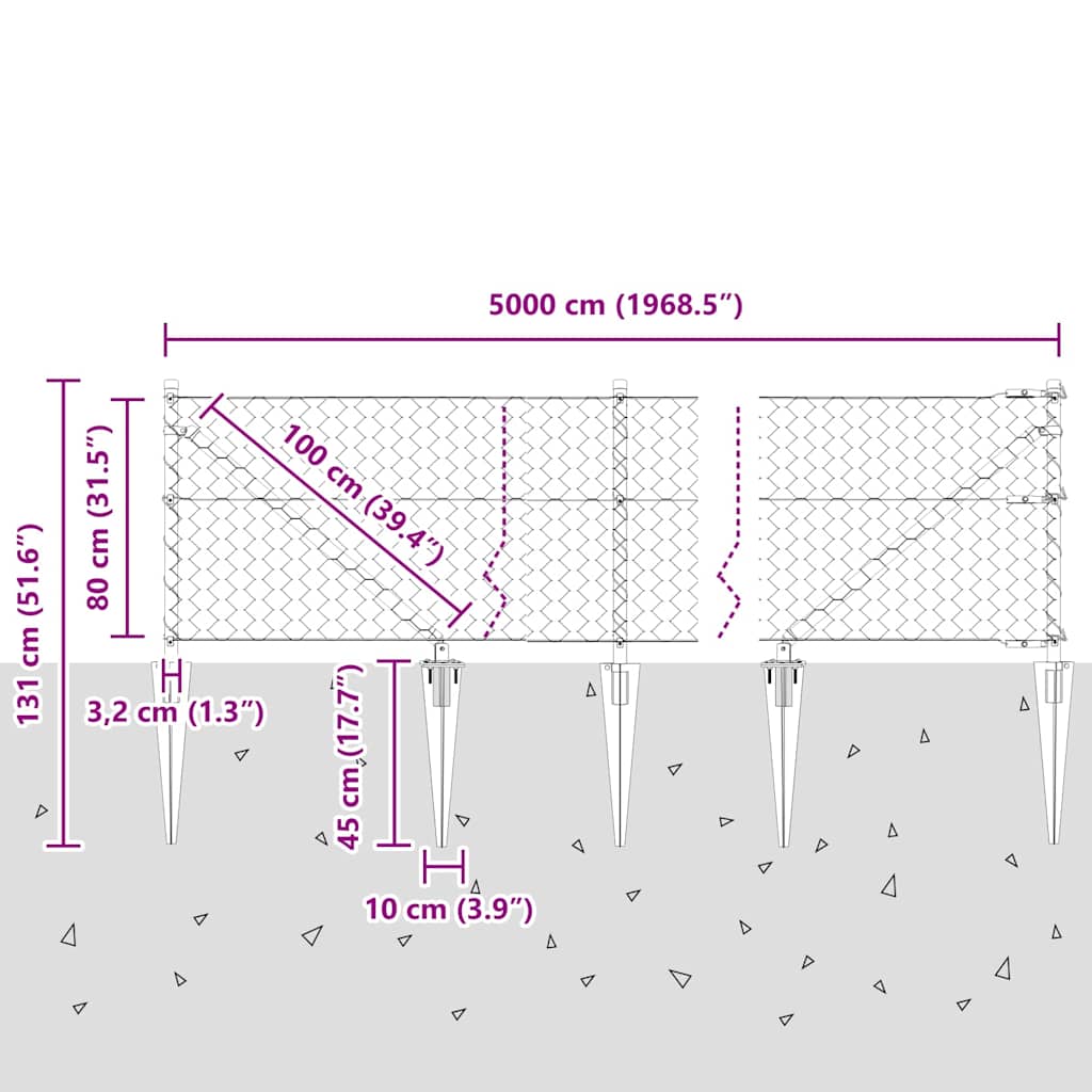 - Totale afmetingen: 5000 x 3,2 x 80 cm (L x B x H)