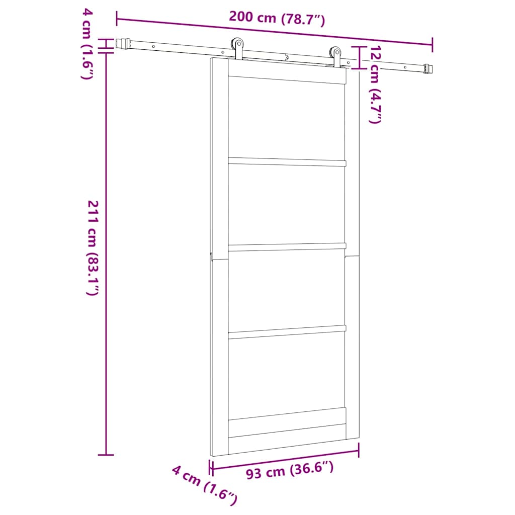 - Massief grenen vakmanschap De deur is gemaakt van massief grenenhout, dat bekendstaat om zijn duurzaamheid en mooie textuur. Dit natuurlijke materiaal geeft de deur een aantrekkelijke uitstraling en zorgt voor een lange levensduur. Het is versterkt met gepoedercoat staal voor extra sterkte, wat een uitstekende combinatie is voor schuifmechanismen.