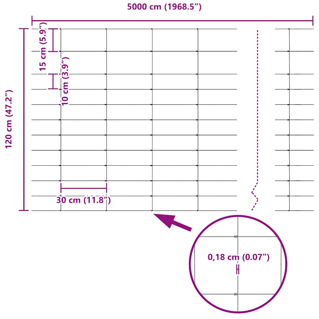 - Totale afmetingen: 5000 x 120 cm (L x B)