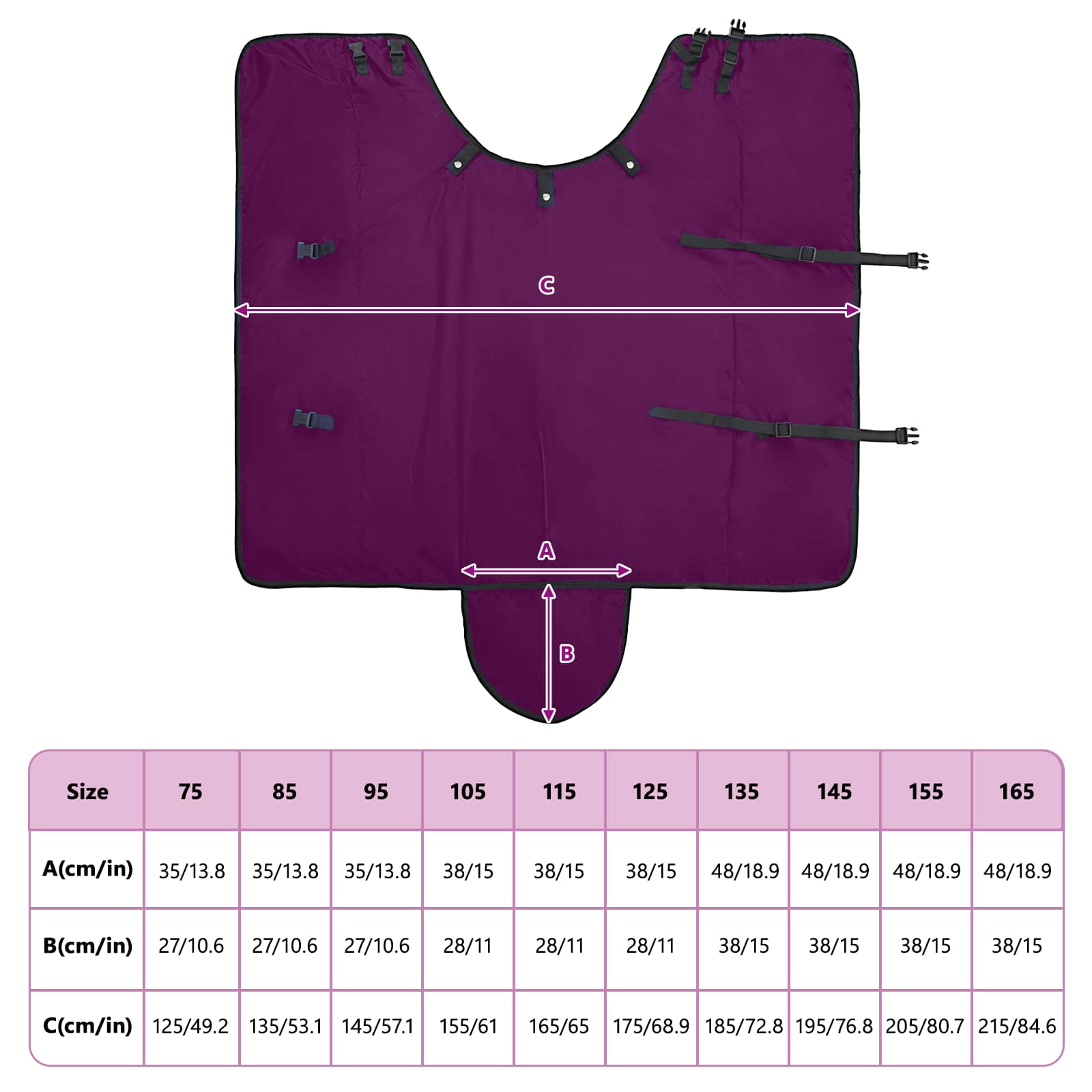 - Functionele ontwerpdetails: Het paardendeken heeft een verstelbare gespsluiting en klittenbandsluitingen voor een perfecte pasvorm. Deze details zorgen voor een comfortabele fit, terwijl je het snel en gemakkelijk kunt af- en omdoen als dat nodig is, afhankelijk van het weer of de activiteit van je paard.