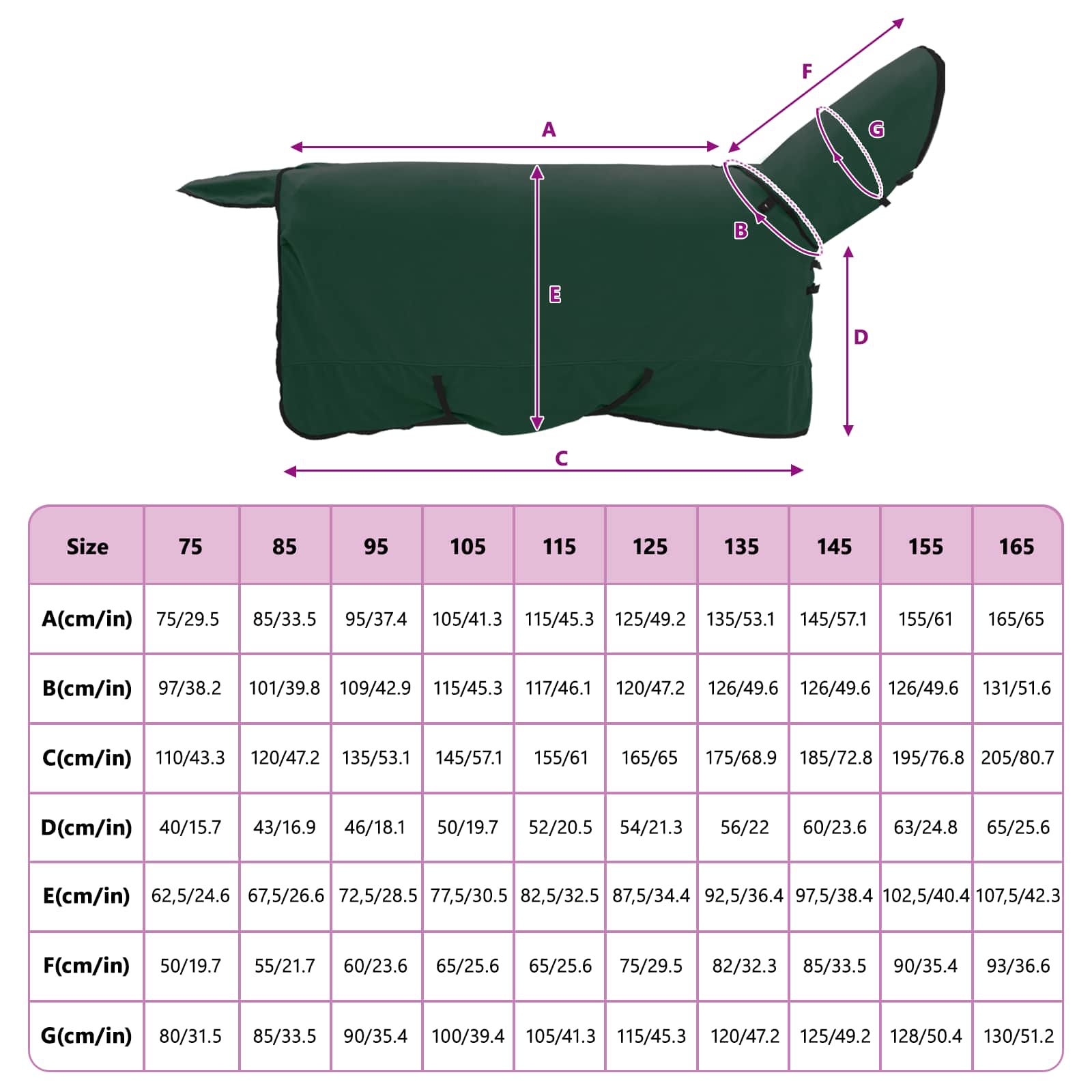 - Materiaal details: Deze deken is van polyester, wat zorgt voor geweldige duurzaamheid en bestand is tegen ruwe buitenomstandigheden. De fluwelige textuur maakt het niet alleen luxueus, maar ook comfortabel, zodat je paard warm blijft zonder dat het irriteert.