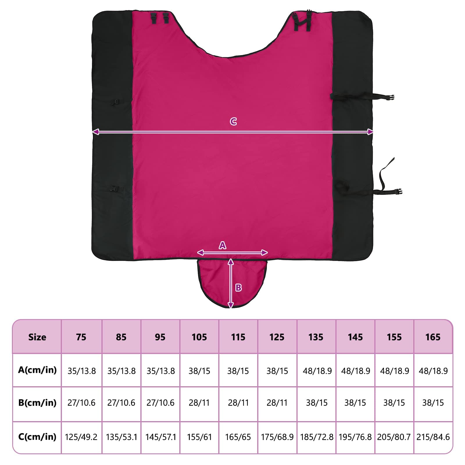 - Functionele ontwerpdetails: Het paardendeken heeft een verstelbare gespsluiting en klittenbandsluitingen voor een perfecte pasvorm. Deze details zorgen voor een comfortabele fit, terwijl je het snel en gemakkelijk kunt af- en omdoen als dat nodig is, afhankelijk van het weer of de activiteit van je paard.