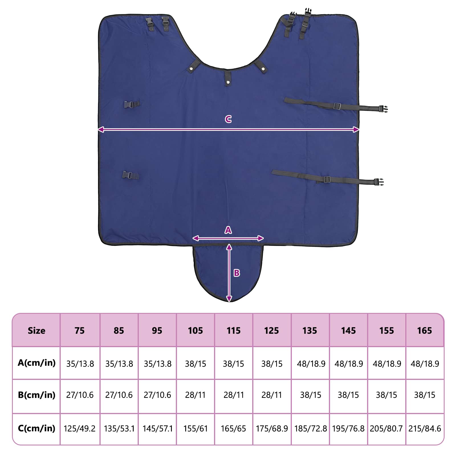 - Functionele ontwerpdetails: Het paardendeken heeft een verstelbare gespsluiting en klittenbandsluitingen voor een perfecte pasvorm. Deze details zorgen voor een comfortabele fit, terwijl je het snel en gemakkelijk kunt af- en omdoen als dat nodig is, afhankelijk van het weer of de activiteit van je paard.