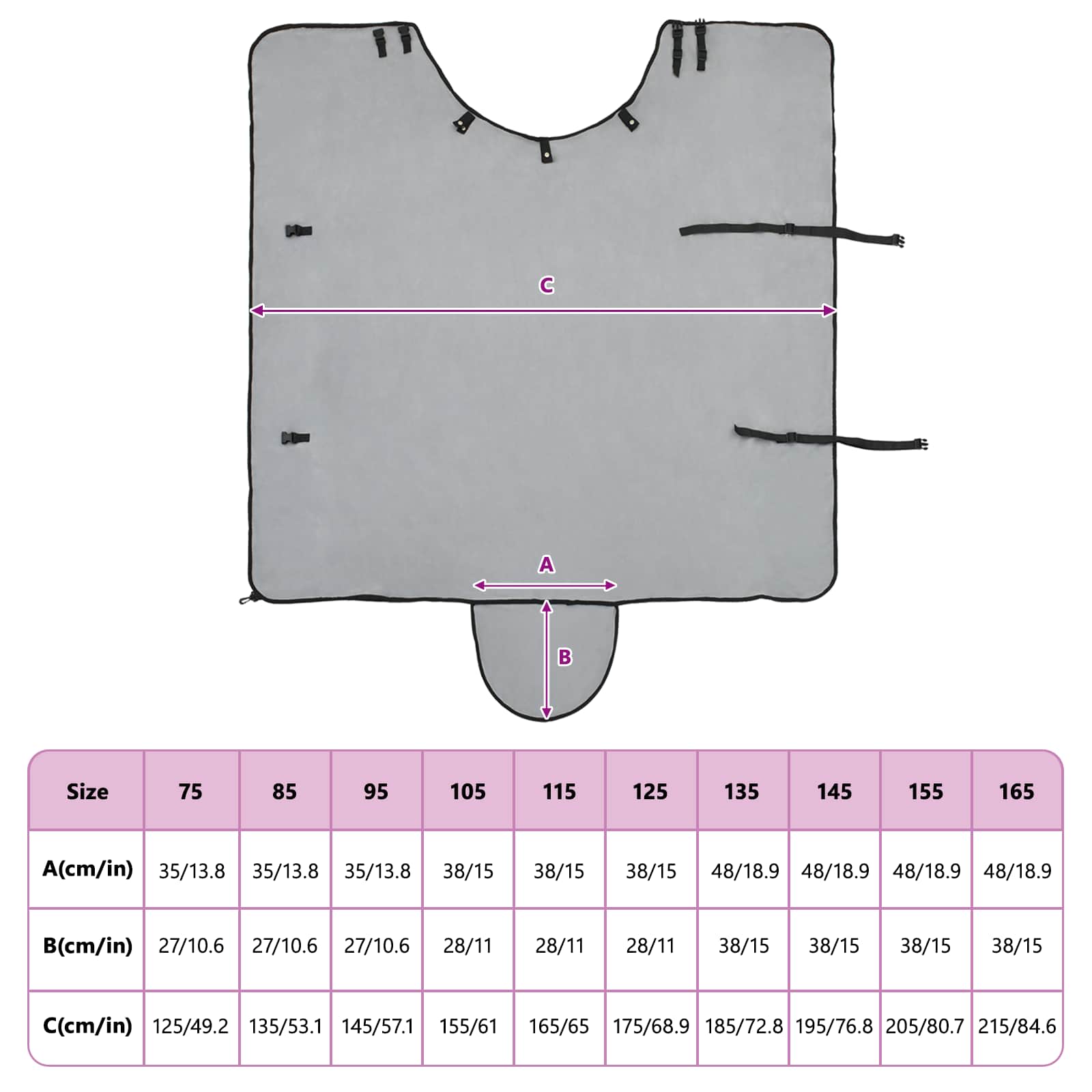 - Aanpasbare kenmerken: De deken heeft afneembare onderdelen, zodat je deze kunt aanpassen aan de grootte en het comfort van je paard. Zo zit hij snug, waardoor koude lucht buiten blijft.