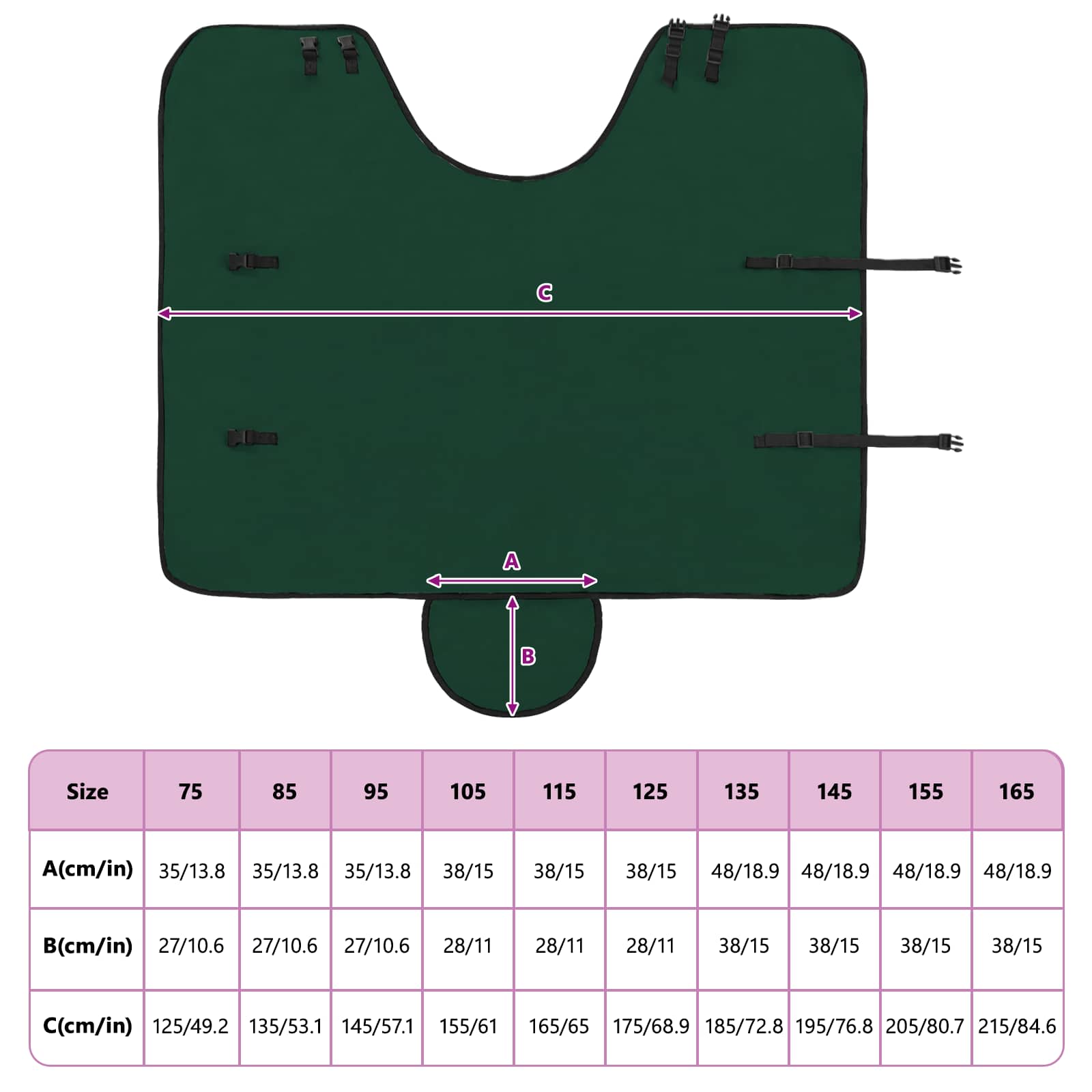 - Aanpasbare kenmerken: De deken heeft afneembare onderdelen, zodat je deze kunt aanpassen aan de grootte en het comfort van je paard. Zo zit hij snug, waardoor koude lucht buiten blijft.
