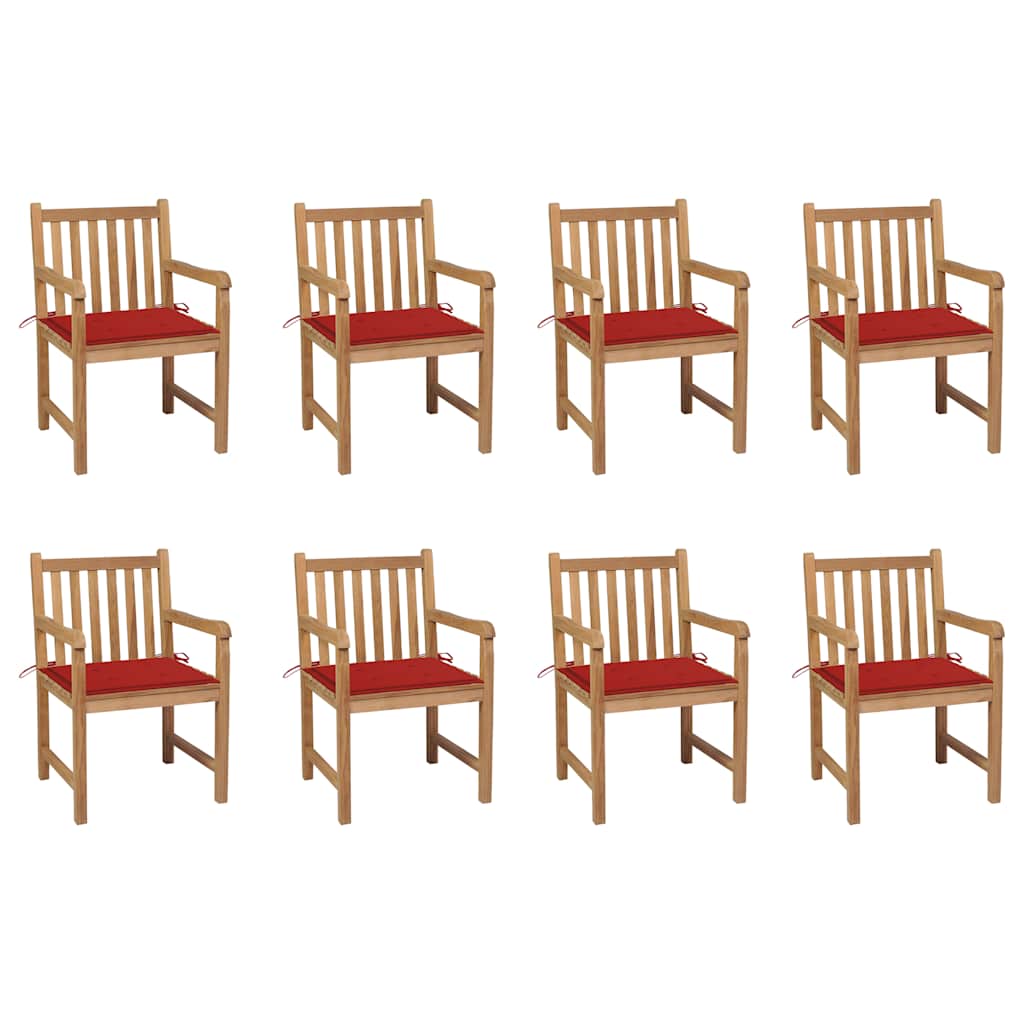 vidaXL Tuinstoelen 8 st met rode kussens massief teakhout