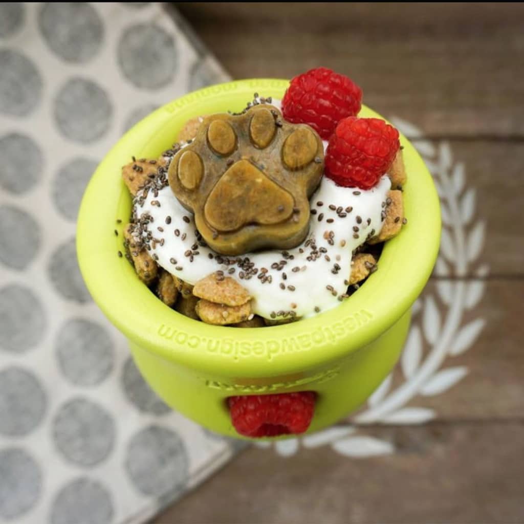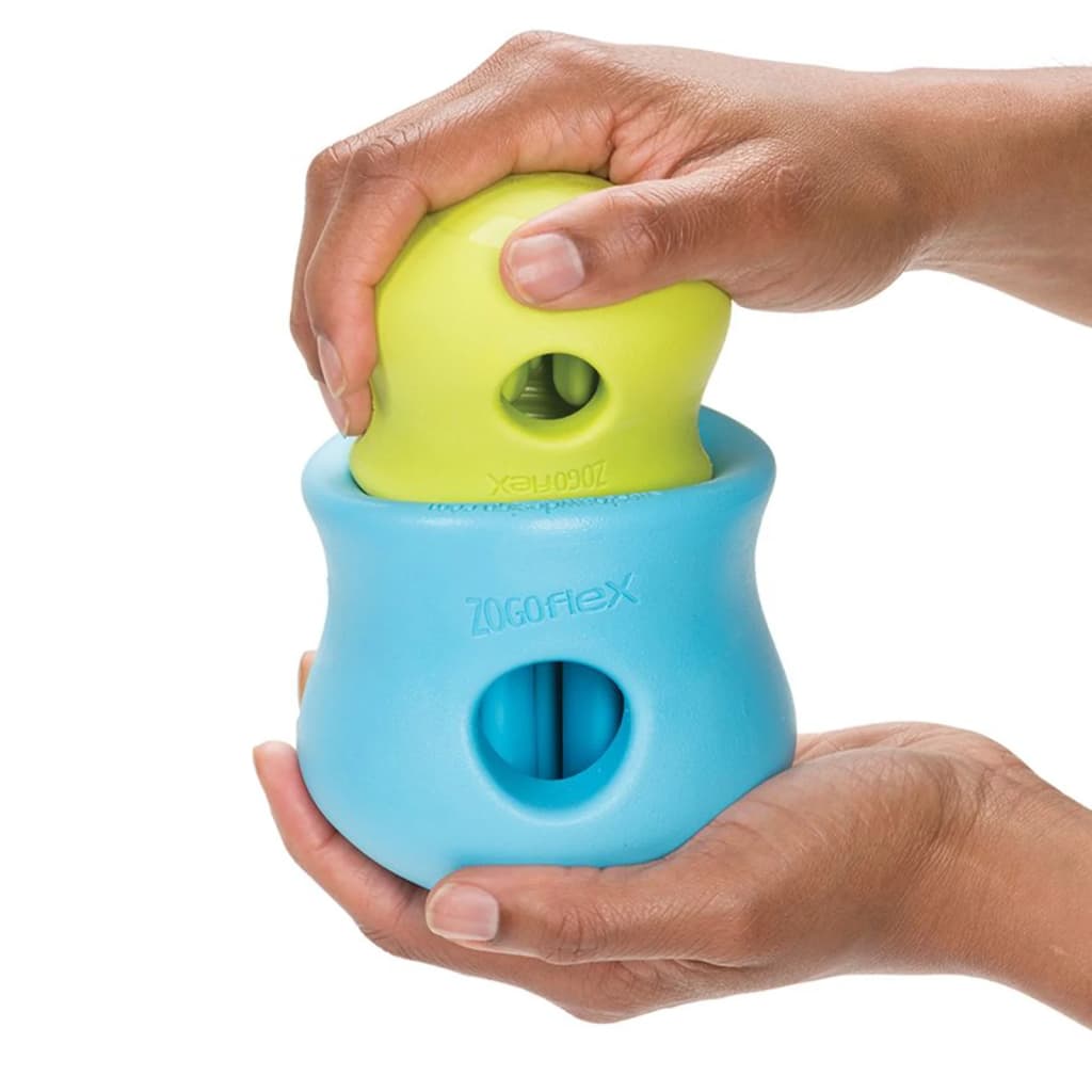 Deze Toppl is een stevig traktatiespeeltje - gemaakt om tegen scherpe hoektanden bestand te zijn! Dit kleine, appelgroene Toppl hondenspeelgoed van West Paw is gemaakt van Zogoflex, een ultraresistent materiaal dat flexibel is, drijft en gerecycled kan worden.