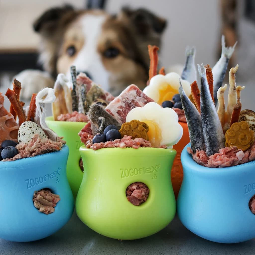 Dankzij de levendige kleur van dit interactieve hondenspeelgoed is het goed zichtbaar in water, gras en sneeuw. Het is perfect voor je hond om met zijn tanden aan te knagen zonder zijn tandvlees of het speelgoed te beschadigen. Vul het traktatiehondenspeelgoed met droogvoer of hondensnoepjes, maar het kan ook gevuld worden met vlees of zuivelproducten en vervolgens ingevroren worden. Het speelgoed brengt je hond blijdschap en voldoening, omdat hij er urenlang mee bezig kan zijn. Het is vrij van BPA en ftalaat en is vaatwasmachinevriendelijk.
