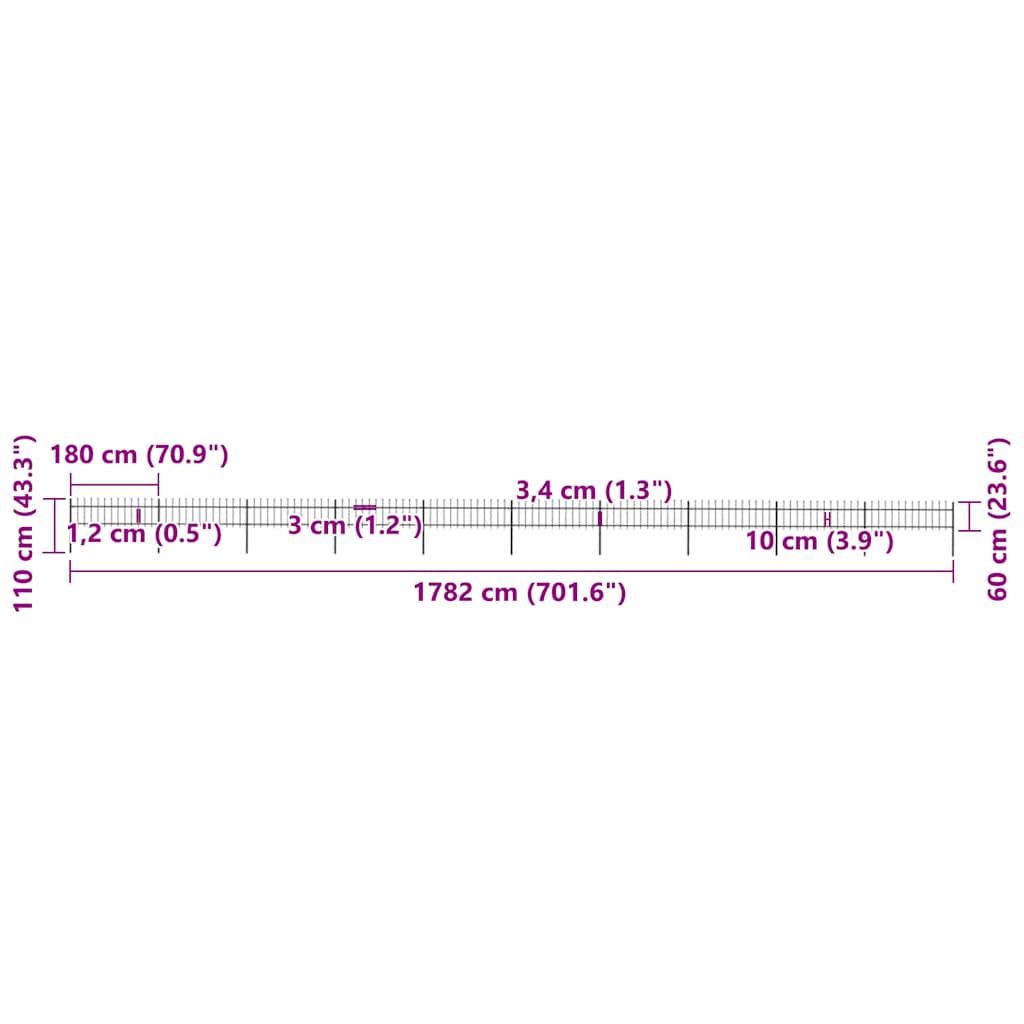 Creëer een elegant hek rond je tuin, huis of looppad met ons tuinhek! Ons decoratieve stalen tuinhek, bestaande uit 10 schuttingpanelen en 11 palen, heeft een totale lengte van 17 meter. Het vormt een stevige, veilige en onderhoudsvrije omheining voor je tuin, huis, bedrijventerrein of dierenverblijf.
