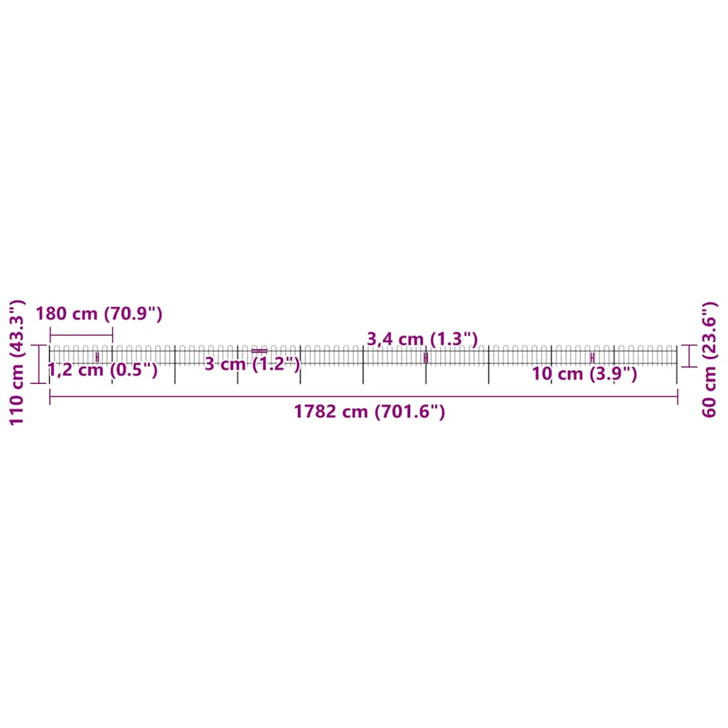 Creëer een elegant hek rond je tuin, huis of looppad met ons tuinhek! Ons decoratieve stalen tuinhek, bestaande uit 10 schuttingpanelen en 11 palen, heeft een totale lengte van 17 meter. Het vormt een stevige, veilige en onderhoudsvrije omheining voor je tuin, huis, bedrijventerrein of dierenverblijf.