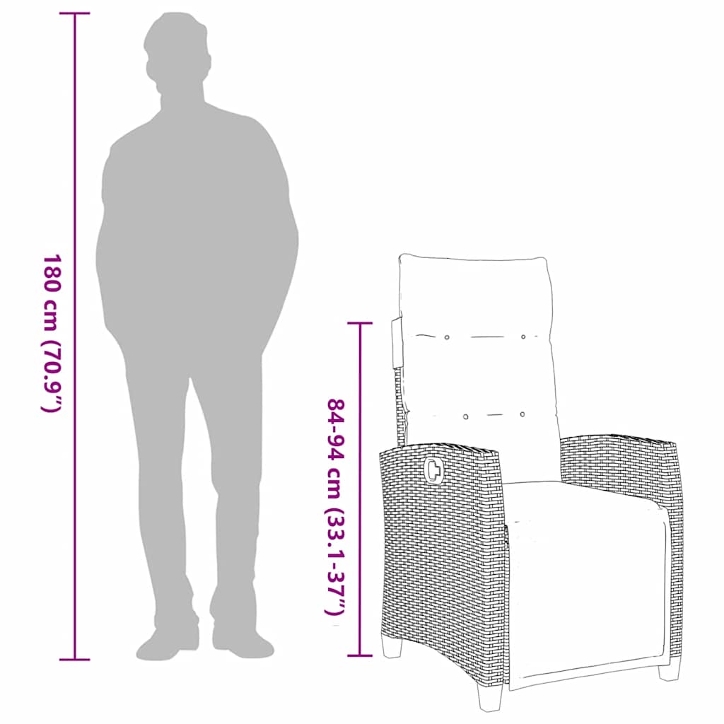 - Verstelbare rugleuning en voetensteun: dit tuinmeubel heeft een hendel. Door aan de hendel te trekken, kun je de rugleuning en voetensteun in elke gewenste positie verstellen en snel weer terugzetten in de oorspronkelijke positie.