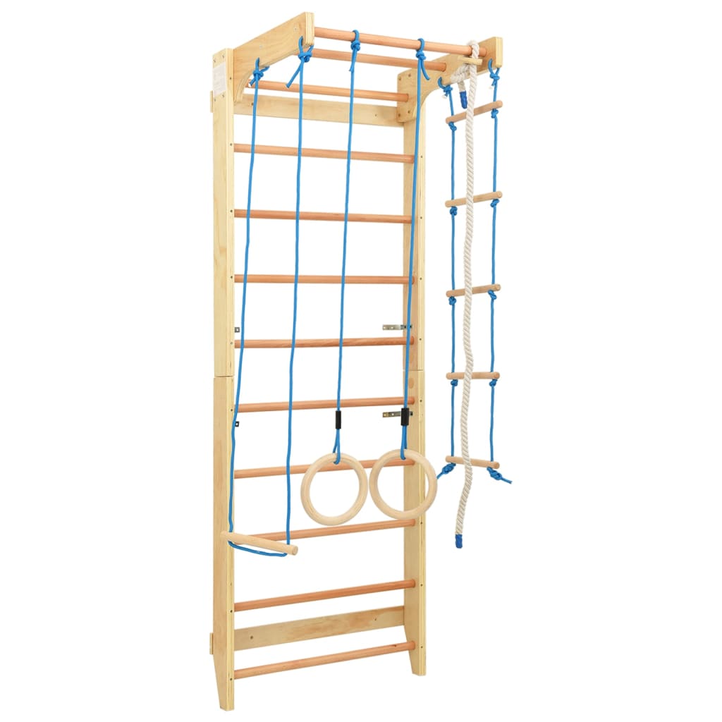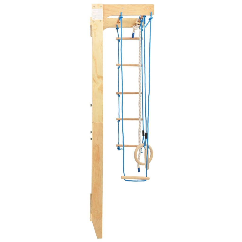 Je wordt verliefd op de vele speelfuncties, zoals: houten ladder, touwladder, klimtouw en turnringen. Dankzij het compacte ontwerp neemt de binnenspeeltuin niet veel ruimte in beslag, maar biedt hij wel voldoende ruimte voor voldoende lichamelijke beweging, actief spel of gewoon plezier met vrienden. De klimset is gemaakt van stevig rubberwood en multiplex en wordt geleverd met hoogwaardige fittingen voor maximale veiligheid en duurzaamheid.