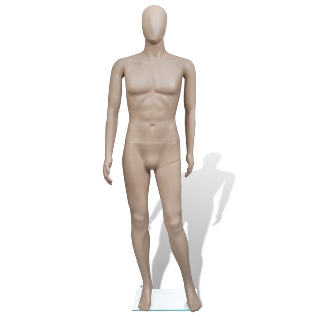 Deze mannelijke mannequin, compleet met een glazen voet, is perfect voor mode-, textiel- of kledingpresentaties waarbij de pop kleding, pruiken, sieraden of schoenen presenteert. De pop bestaat uit 6 gemonteerde onderdelen: hoofd, romp, rechterbeen, linkerbeen, linkerarm en rechterarm.