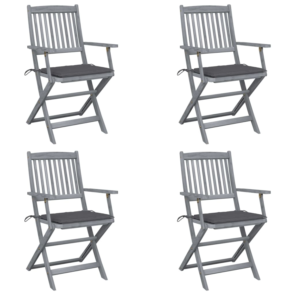 Deze moderne houten stoelenset met kussens voegt een vleugje natuurlijke stijl toe aan je tuin, patio of terras. Deze klapstoelen zijn een goede keuze als je buiten wilt eten.