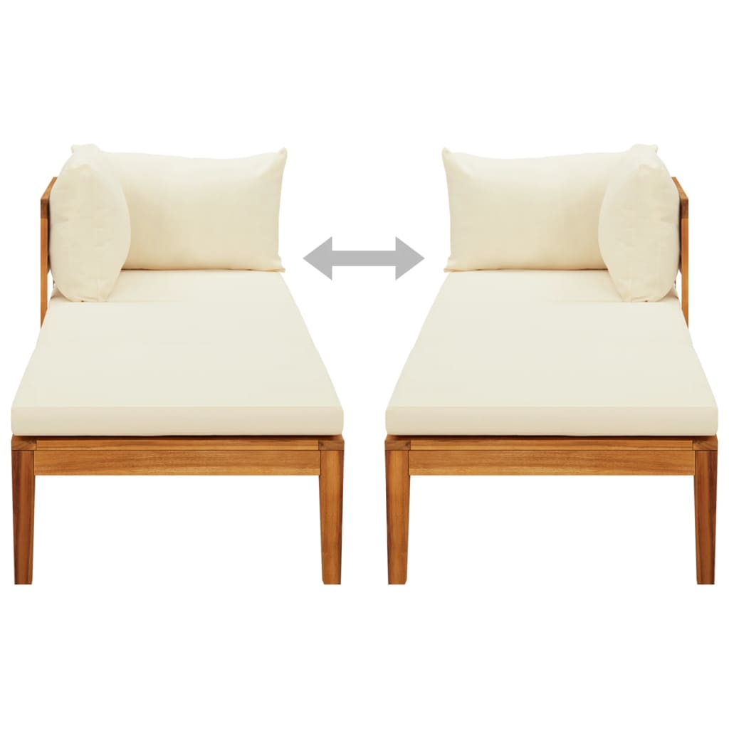 Dit ligbed is gemaakt van massief acaciahout, een hardhout met dichte nerven. Dit prachtig vormgegeven loungebed is stabiel, duurzaam en opvallend. Het voortreffelijke vakmanschap en de prachtige houtnerven maken elk stuk net iets anders dan de rest. De inbegrepen kussens bieden extra comfort tijdens het ontspannen. Daarnaast kan de armleuning zowel links als rechts gemonteerd worden.