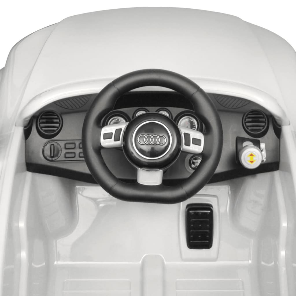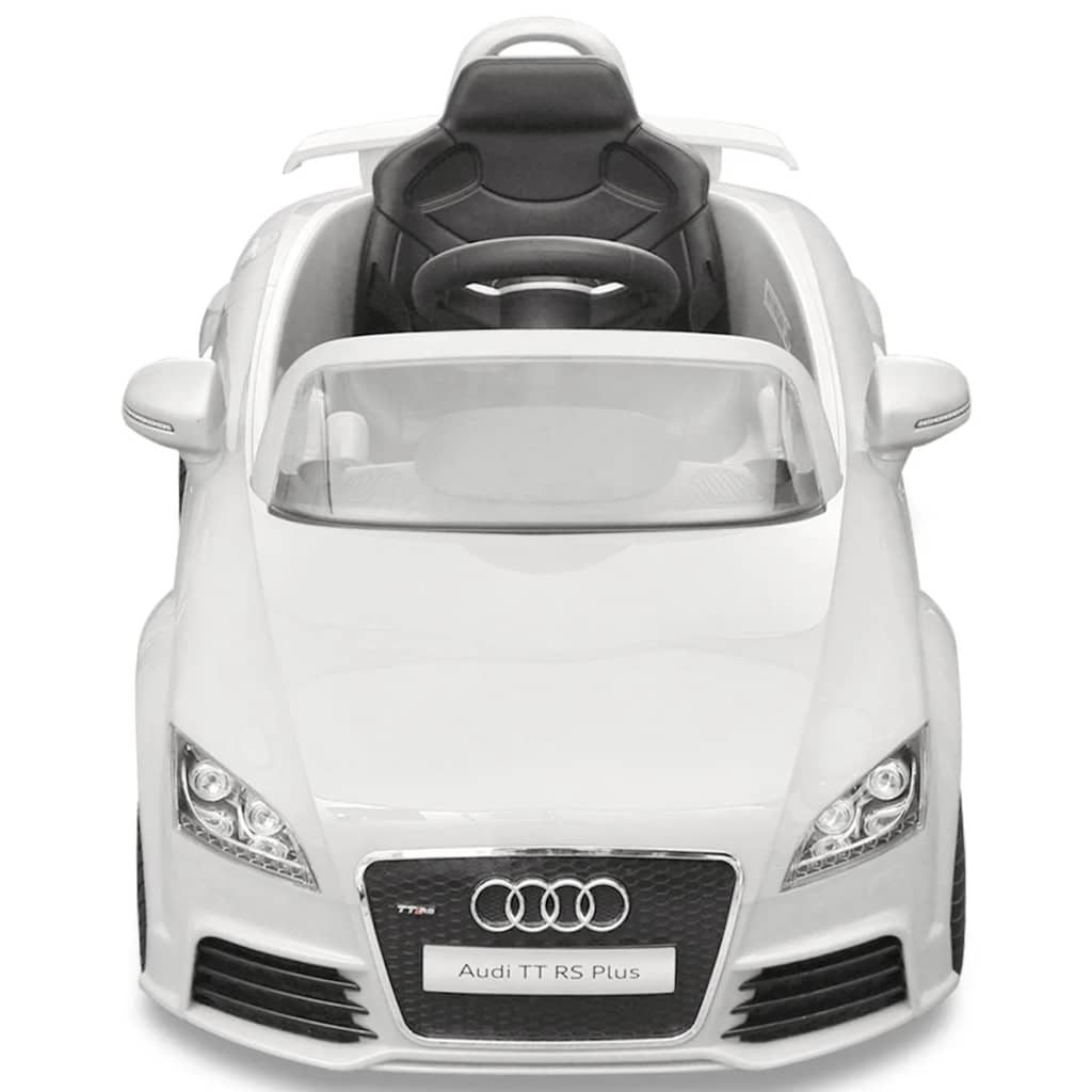 Deze Audi TT RS auto combineert een sportieve uitstraling met geweldige kindvriendelijke eigenschappen en de glimmende witte kleur maakt hem een echte blikvanger.