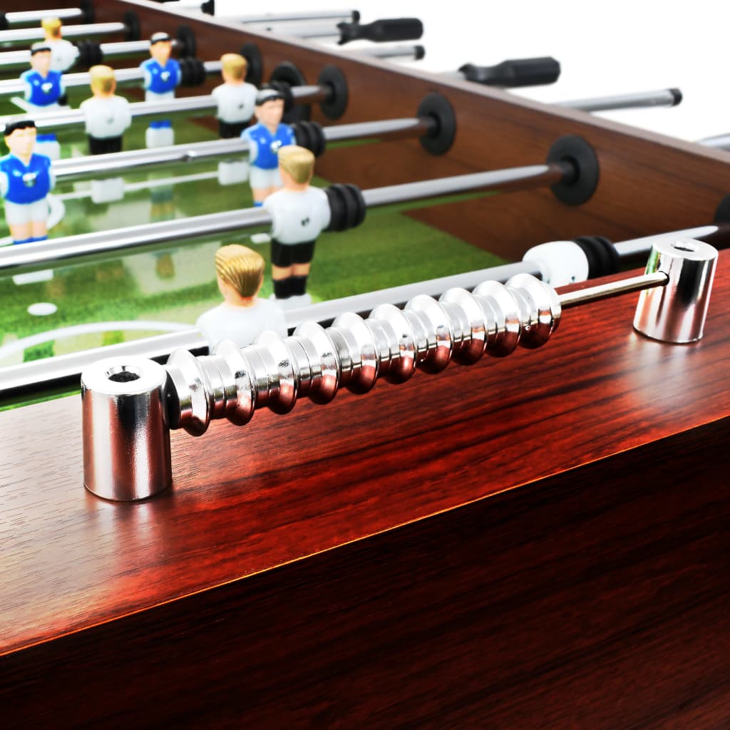 - Complete voetbalset: deze voetbaltafel is volledig uitgerust met alles wat je nodig hebt: 2 doelen, 2 voetballen, 2 scoreborden, 8 spelersstaven en 22 spelers, voor een echt authentieke speelervaring.