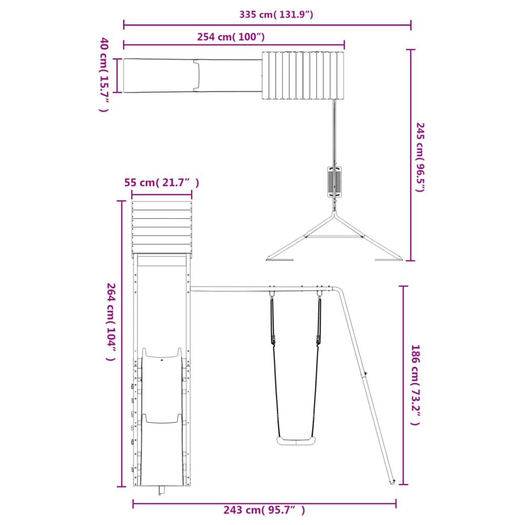 - Totale afmetingen: 245 x 335 x 264 cm (L x B x H)