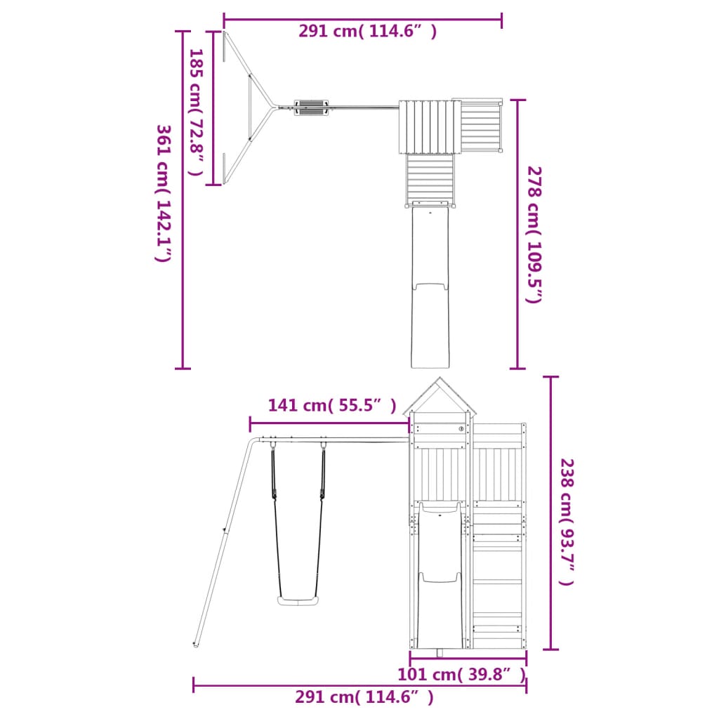 - Multi-activiteitencentra: het speeltoestel heeft een 90 cm hoog platform en valt op door zijn golvende glijbaan, een enkele schommel en zandbakken. Je kleintjes kunnen ook hun vriendjes uitnodigen om mee te doen.
