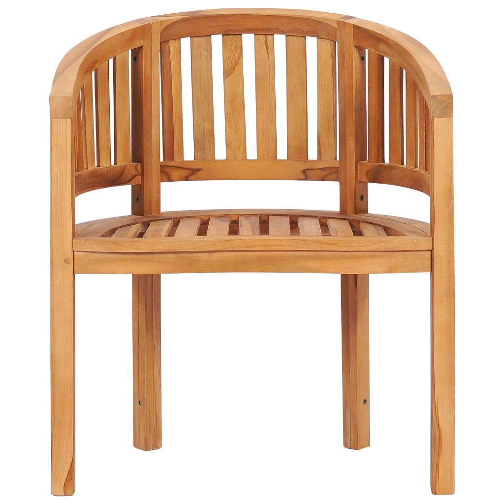 Deze houten stoel in een bananenvorm is comfortabel en elegant. Hij ziet er prachtig uit in de tuin en op het terras.