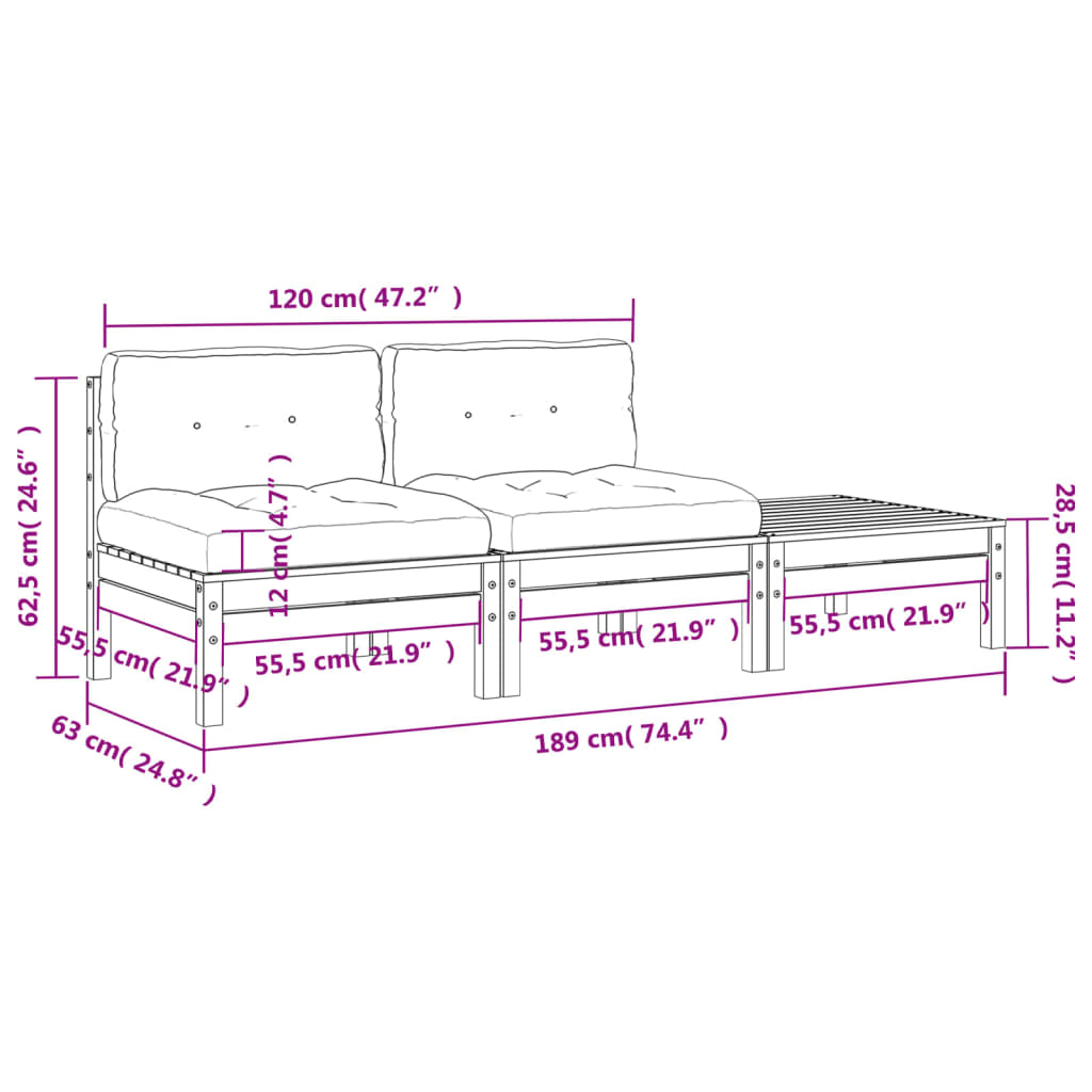 - Totale afmetingen: 189 x 63 x 62,5 cm (B x D x H)