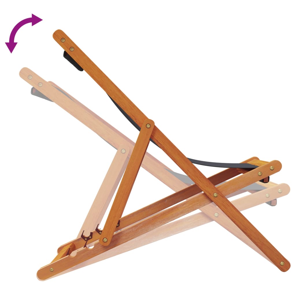 Ontspan in deze verstelbare stoelen op het strand, op de camping of in je tuin! De inklapbare strandstoelen zijn gemaakt van massief eucalyptushout en polyester en zijn weerbestendig en zeer duurzaam.