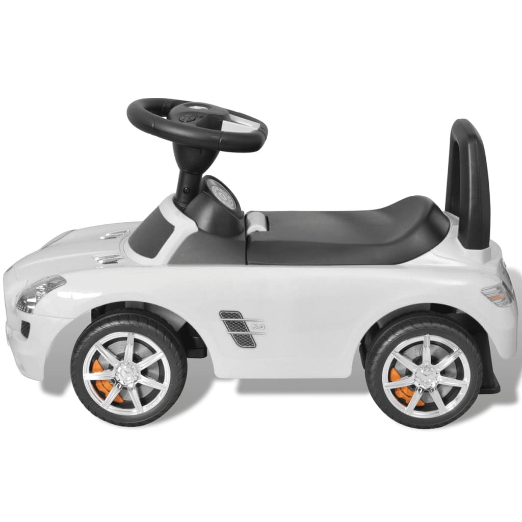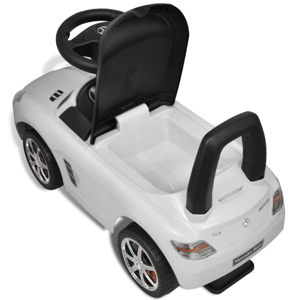 Hij speelt zes nummers die worden geactiveerd door de knoppen op het stuur. De auto heeft ook claxongeluiden om zo een echte auto na te bootsen. Hij heeft een opbergruimte onder de zitting om klein speelgoed op te bergen. Dankzij zijn duurzame kunststof constructie kan deze duwauto tot 23 kg dragen en is hij geschikt voor kinderen vanaf 2 jaar. De stabiele basis met vier wielen zorgt ervoor dat kinderen gemakkelijk zelf op en af kunnen stappen.