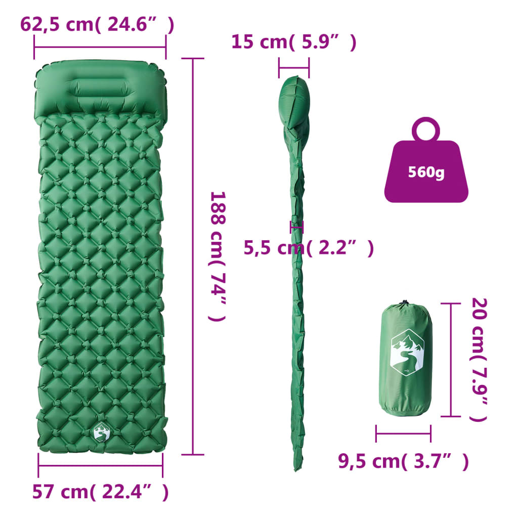 - Duurzaam en waterbestendig: het zelfopblazende kampeermatras is samengesteld uit 40D nylon en TPU-coating, waardoor het duurzaam, waterbestendig en weerbestendig is.