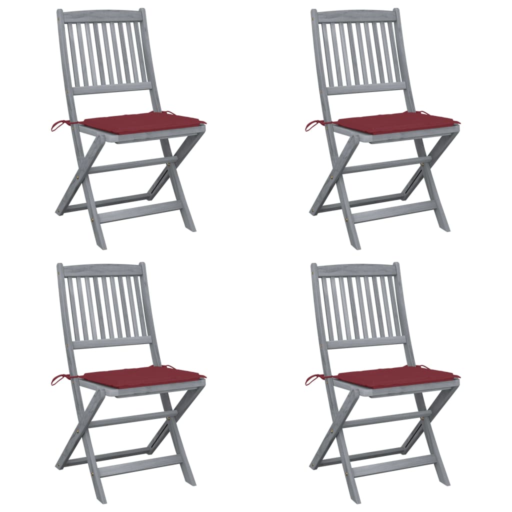 Deze moderne houten stoelenset met kussens voegt een vleugje natuurlijke stijl toe aan je tuin, patio of terras. Deze klapstoelen zijn een goede keuze als je buiten wilt eten.