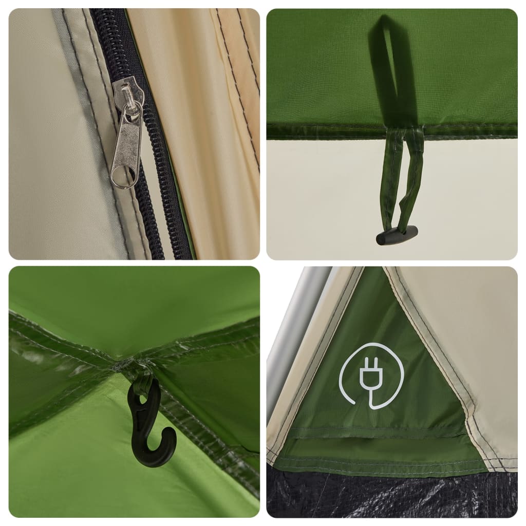 - Volledig waterdicht ontwerp: deze tent is gemaakt van polyester met een PU-coating en is waterdicht en windbestendig. De getapete naden voorkomen effectief het binnendringen van regenwater, terwijl het robuuste grondzeil helpt een droog en comfortabel interieur te behouden.