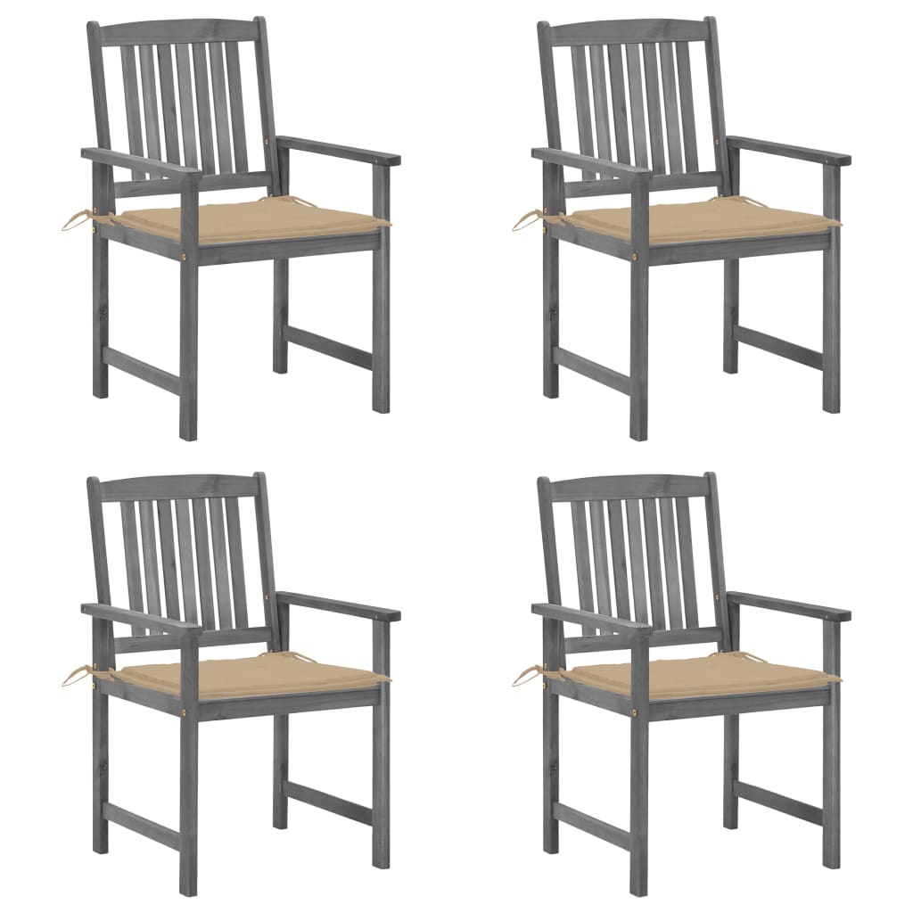Deze tuinstoelen zijn gemaakt van massief acaciahout waardoor ze stevig en stabiel zijn. De kussens bieden extra comfort. Elk kussen heeft 2 sets touwtjes voor bevestiging aan de stoel.