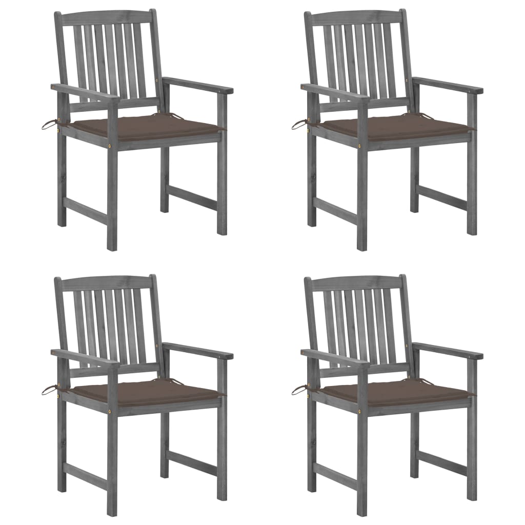 Deze tuinstoelen zijn gemaakt van massief acaciahout waardoor ze stevig en stabiel zijn. De kussens bieden extra comfort. Elk kussen heeft 2 sets touwtjes voor bevestiging aan de stoel.