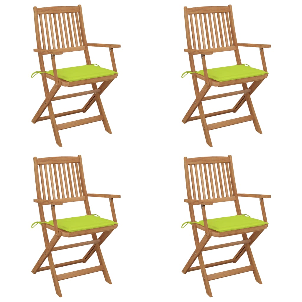 Deze massief acaciahouten inklapbare stoelen met kussens zijn perfect om op te ontspannen en in je tuin of op je terras van de zon te genieten.