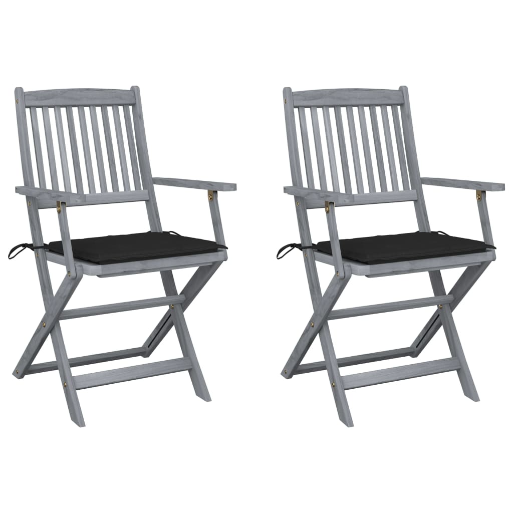 Deze moderne houten stoelenset met kussens voegt een vleugje natuurlijke stijl toe aan je tuin, patio of terras. Deze klapstoelen zijn een goede keuze als je buiten wilt eten.