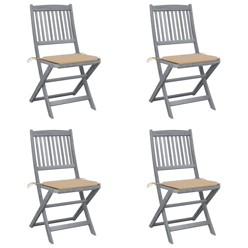 Deze moderne houten stoelenset met kussens voegt een vleugje natuurlijke stijl toe aan je tuin, patio of terras. Deze klapstoelen zijn een goede keuze als je buiten wilt eten.