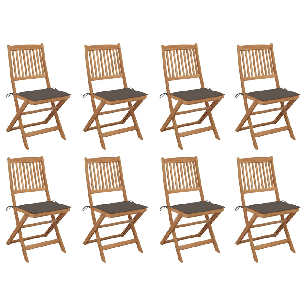 Deze eetstoelen zijn gemaakt van eersteklas acaciahout, een tropisch hardhout, dat weerbestendig en duurzaam is voor jarenlang gebruik. Het geoliede oppervlak is gemakkelijk schoon te maken met een vochtige doek. De stoelen kunnen worden ingeklapt om ruimte te besparen wanneer ze niet in gebruik zijn. Bovendien zorgen de meegeleverde kussens voor extra comfort. Elk kussen heeft 2 sets touwtjes om het stevig aan de stoel te bevestigen.