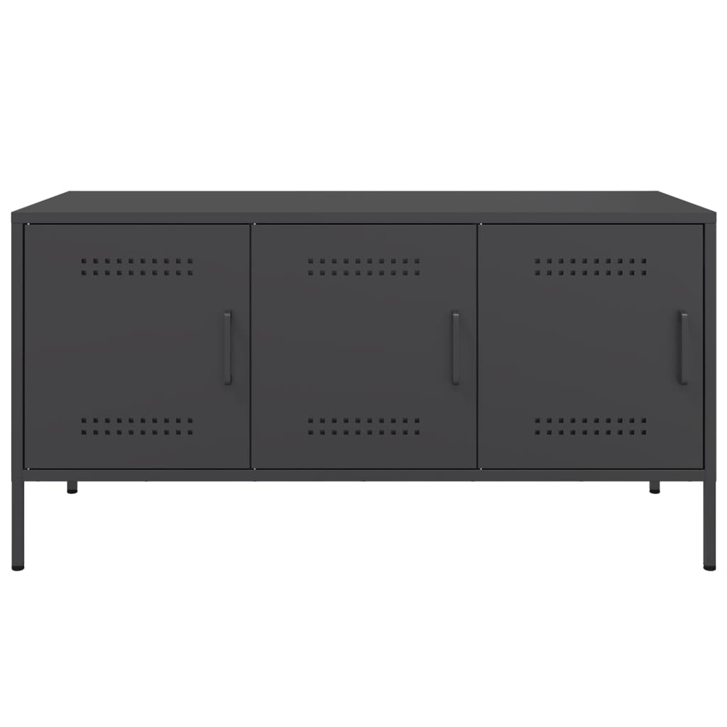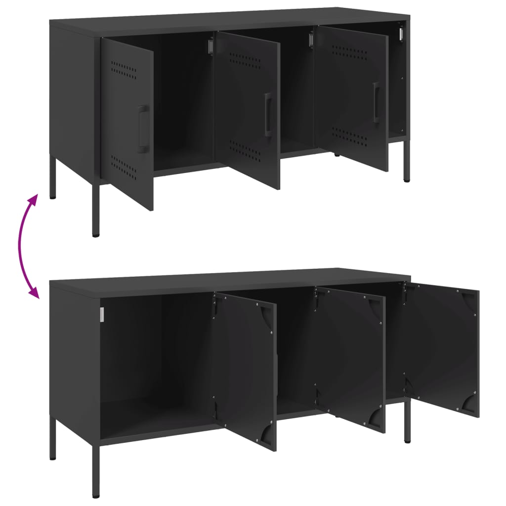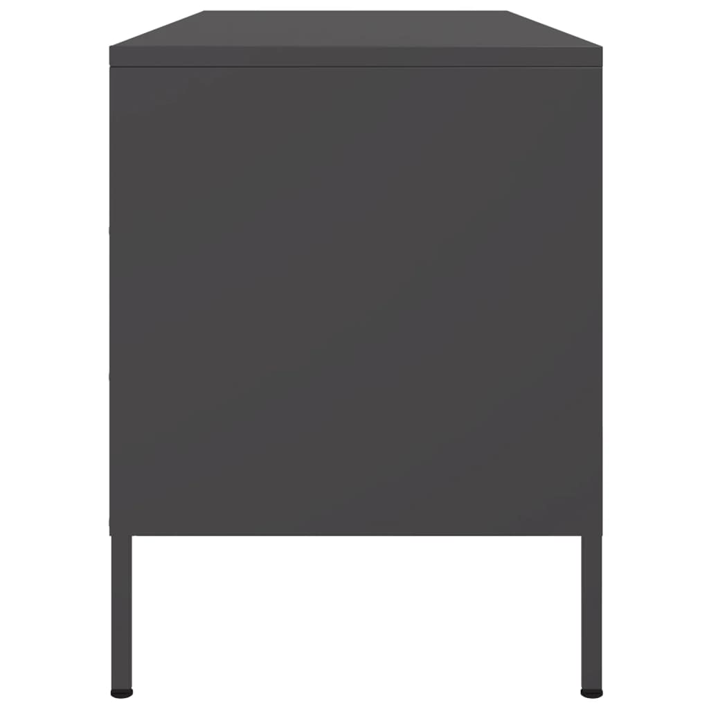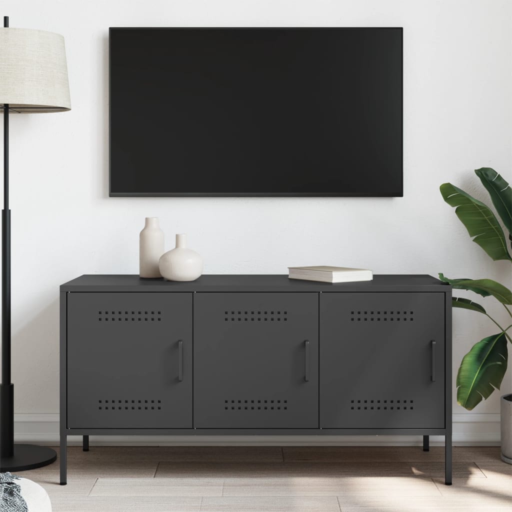 Dit tv-meubel met een industriële stijl is een tijdloze toevoeging aan je woon- of slaapkamer.
