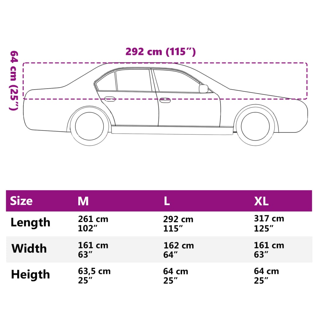 - Neem voor de aankoop nauwkeurig de maten van je auto op om er zeker van te zijn dat je de juiste maat kiest.
