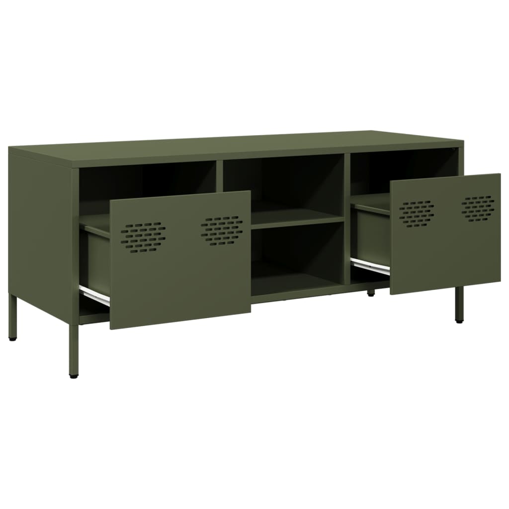 Dit stevige tv-meubel met een industriële stijl is een tijdloze toevoeging aan je woon- of slaapkamer.