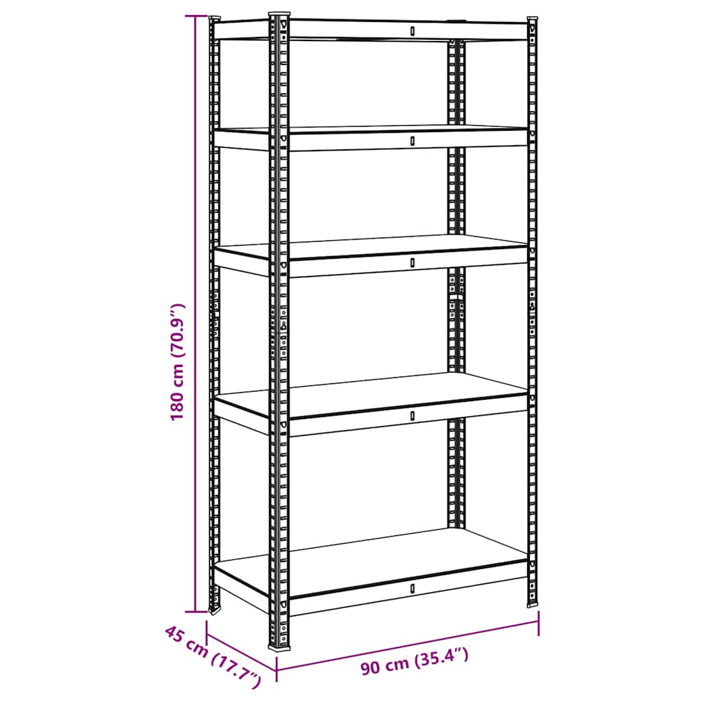 - Sterk draagvermogen: Dankzij het extra dikke materiaal, de verstevigingsstaven onder elke plank en het inhaakloze rekontwerp heeft dit heavy-duty rek een groot draagvermogen.