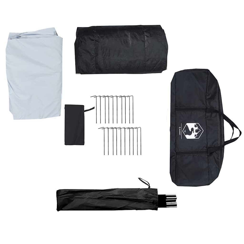 - Inclusief koningsstokken voor luifel: deze tent is voorzien van koningsstokken waarmee de toegangsdeur in een handomdraai omhoog kan worden gezet, zodat er een luifel ontstaat. Nu kun je genieten van het buitenleven terwijl je in de schaduw blijft!